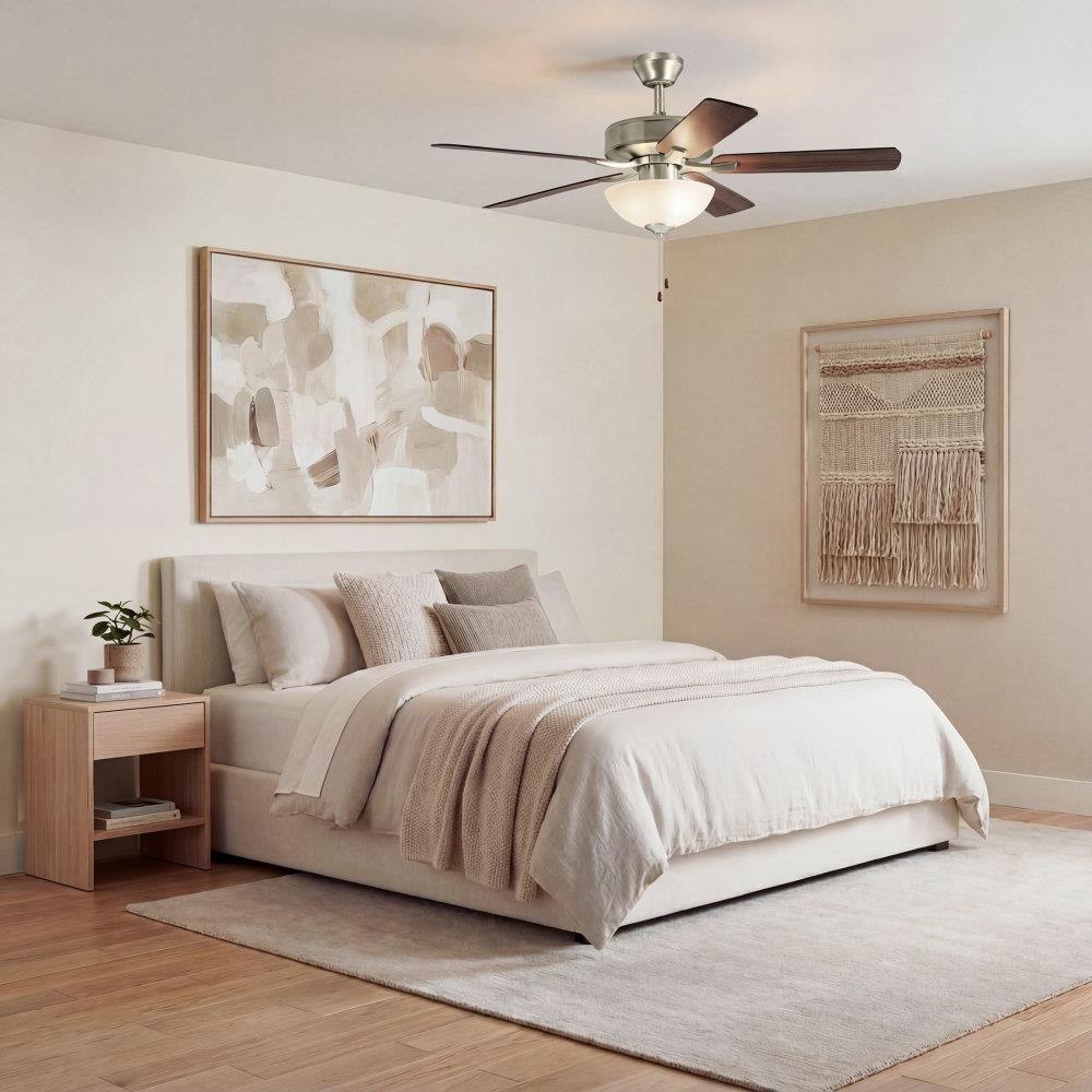 Adorned with an etched-glass bowl shade and LED candelabra lights, the Basic Pro Select ceiling fan comes with a 4-inch downrod and is low ceiling adaptable. Designed with 52-inch blades and a Matte White finish, the Basic Pro Select coordinates perfectly into your favorite living area.